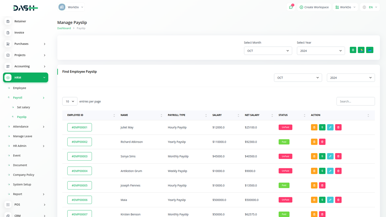 You can generate monthly payslips and make bulk payments through easy clicks. You could also change the status of the payslip with an easy CTA. An employee could view the breakdown of their salary components.